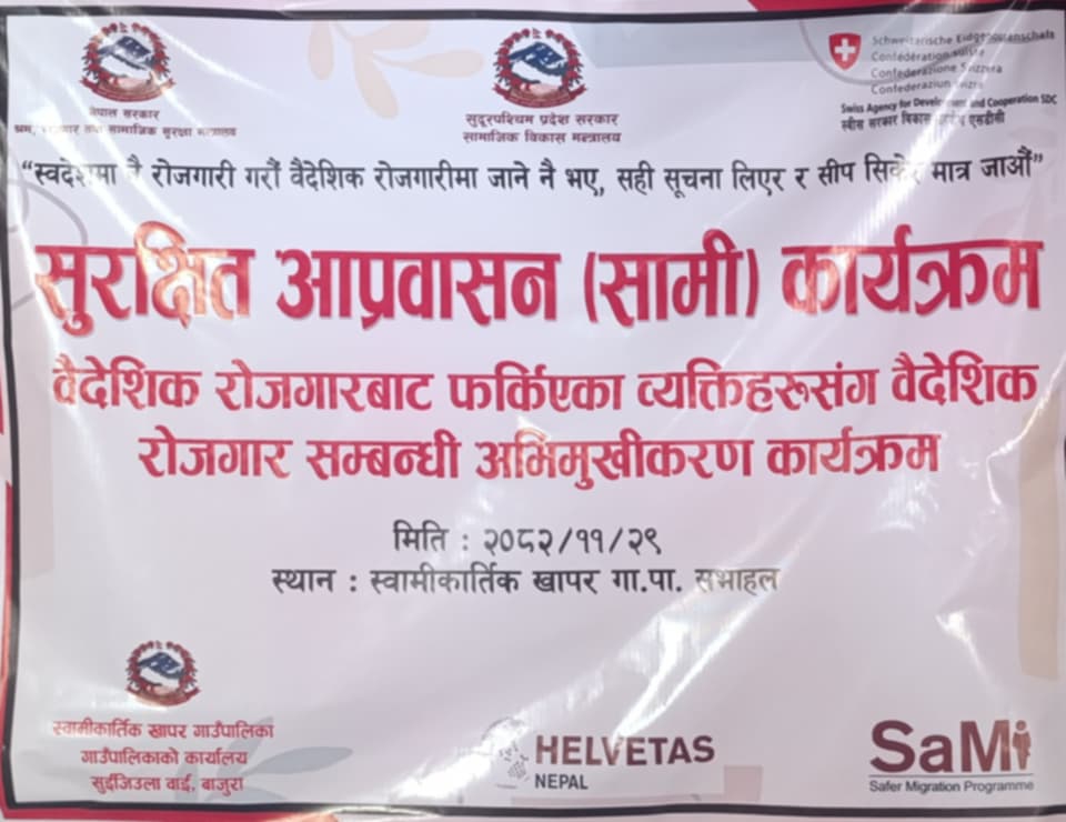 Safer Migration Programme अन्तर्गत सञ्चालन गरिएको उक्त कार्यक्रम Helvetas Nepal को सहकार्य तथा Swiss Agency for Development and Cooperation को सहयोगमा आयोजना गरिएको हो।