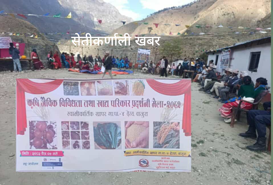 उमेश जङ्ग शाही ५ चैत्र   बाजुरा- स्वामिकार्तिक खापर गाउँपालिका–४ देउरामा बुधबार  आयोजित “कृषि जैविक विविधता तथा खाद्य परिकार प्रदर्शनी मेला–२०८२” उत्साहपूर्ण सहभागिताका साथ सम्पन्न भएको छ। स्थानीय बालीको संरक्षण, प्रवर्द्धन र बजारीकरणलाई मुख्य लक्ष्य बनाउँदै आयोजना गरिएको मेलाले क्षेत्रमै नयाँ सन्देश दिएको छ।